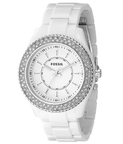 Fossil Women's ES2444 White Resin Bracelet White Glitz Analog Dial Watch Best